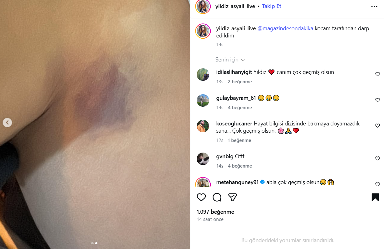 Ünlü oyuncu, yaşadığı şiddet sonrası çektiği fotoğrafları sosyal medya hesabında paylaştı. Asyalı, paylaşımında “Kocam tarafından darbedildim.” ifadelerine yer verdi.