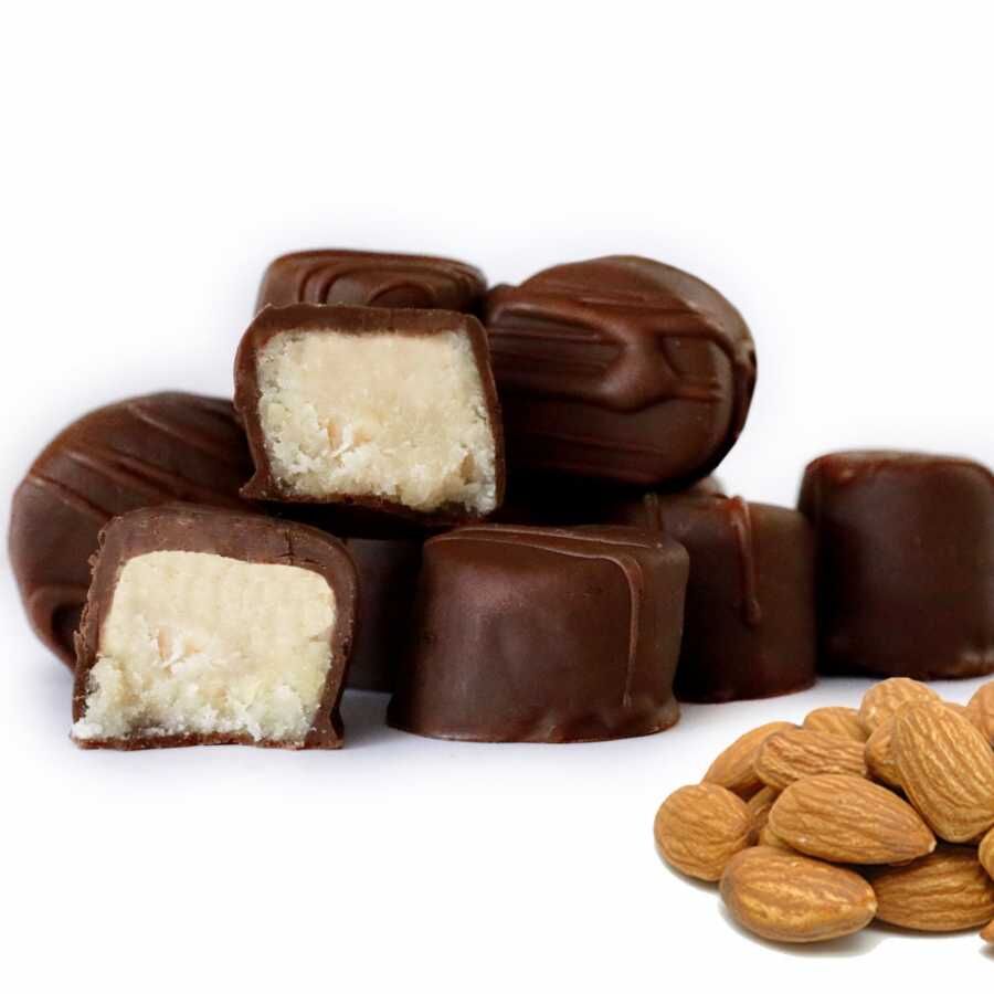 Öncelikle şeker ve suyu bir tencerede kaynatarak şerbet hazırlayın ve ılınmaya bırakın. Bademleri robottan geçirerek toz haline getirin. Ilınan şerbeti yavaş yavaş bademlere ekleyip karıştırın. Karışımı yaklaşık 1 saat dolapta dinlendirin. Dinlenen karışımdan parçalar alıp el ile şekil verin. Bitter çikolatayı benmari usulü eritip badem ezmelerini içine batırın ve donması için dolaba kaldırın. Çikolata donduktan sonra dilimleyerek servis edin. İzmir’in geleneksel lezzetlerinden biri olan badem ezmesi, bayram sofralarında pratik ve şık bir seçenek olarak tercih edilebilir.