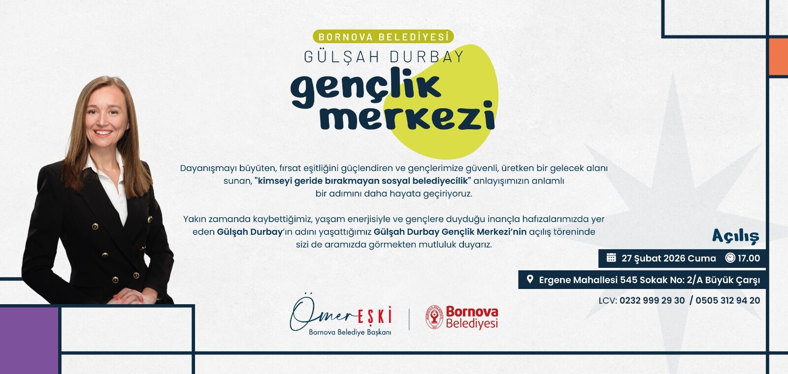 14 Aralık 2025 tarihinde 37 yaşında hayatını kaybeden Şehzadeler Belediye Başkanı Gülşah Durbay'ın anısını yaşatmak amacıyla Bornovada bir gençlik merkezi açılacak. Merkez, yarın yani 27 Şubat 2026 Cuma günü saat 17.00'de gerçekleştirilecek olan açılış töreni ile hizmete girecek.
