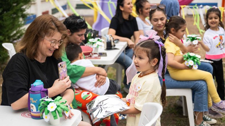 Bornova’da Çocuk Oyun ve Aktivite Merkezleri Anneler Günü’nü coşku ve sevgiyle kutladı. Evka 3 Yağmur Çocuk Oyun ve Aktivite Merkezi’nde 3-6 yaş grubu çocuklar anneleriyle birlikte dans etti, oyunlar oynadı ve el emeğiyle çiçek taçlar yaptı. Etkinliğin en heyecanlı anıysa, gözleri kapalı annelerin çocuklarını tanımaya çalıştığı dakikalar oldu.