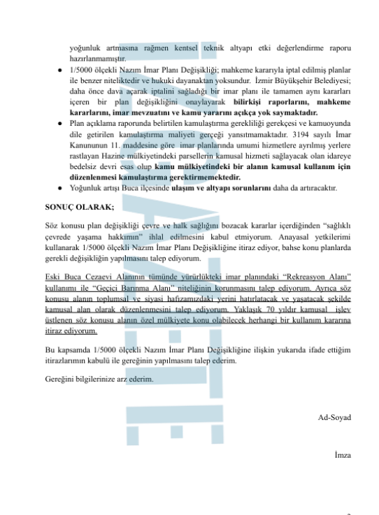 Ayrıca, İzmir Büyükşehir Belediye Meclisi’nin 29 Ocak 2026 tarihinde onayladığı “İzmir İli, Buca İlçesi, İnönü Mahallesi sınırları içerisinde yer alan 673 ada ve diğer parseller için hazırlanan 1/5000 Ölçekli Nazım İmar Planı Değişikliği”ne de itiraz edileceği belirtildi.