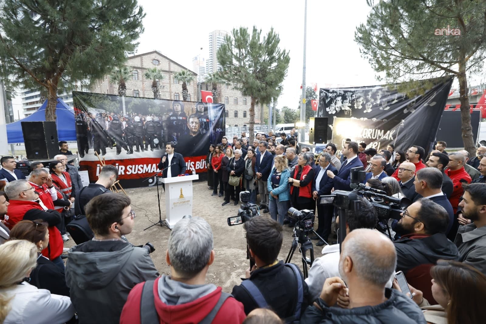 İzmir Büyükşehir Belediye Başkanı Tugay ise, “Çağatay Başkan ile mücadeleyi İzmir’in her tarafına yayalım dedik. O yüzden cuma gününden sonra Meslek Fabrikası’nda toplanmayalım, başka eylemlilikler devam etsin dedik. Ama ben öyle anlıyorum ki bizim söylememizle bir şey değişmeyecek. Çünkü artık bu mücadeleyi herkes kabullenmiş, kendisini bu işin bir parçası olarak görmüş. Burada bir tane kişi kalsa bile bilsin ki ben Cemil Tugay olarak onun yanında kalacağım. Bu konu herhangi bir siyasi partinin kendi siyaseti için yaptığı bir şey değil. Biz CHP olarak burada olduk çünkü şunu biliyoruz; burada bir AKP’li belediye olsa onlardan almazlardı. CHP’li bir belediye bu binayı kullanıyor diye yapıyorlar. Bu iş herkesin sorunu. Bu haksızlık bitmedikçe bu direniş, bu eylem bitmeyecektir. Bunu artık biz de durduramayız.”