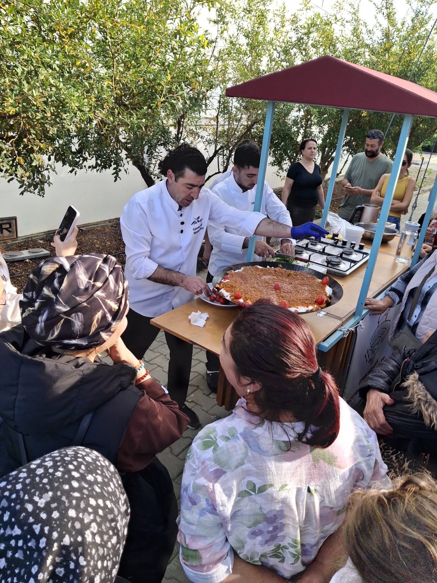 Efes Tarlası Yaşam Köyü'ndeki Üretici Pazarı, bu hafta yerel lezzetleri katılımcılara ulaştırdı. Efes Selçuk Gastronomi ve Aşçılar Derneği Başkanı Şef Ramazan Adsız, düzenlenen atölyede bayat ekmekle hazırlanan tirit kebabı yemeğinin tarifini katılımcılarla paylaştı. Üretici Pazarı, her pazar günü Efes Tarlası Yaşam Köyü'nde üreticilerle tüketicileri bir araya getirmeye devam edecek.