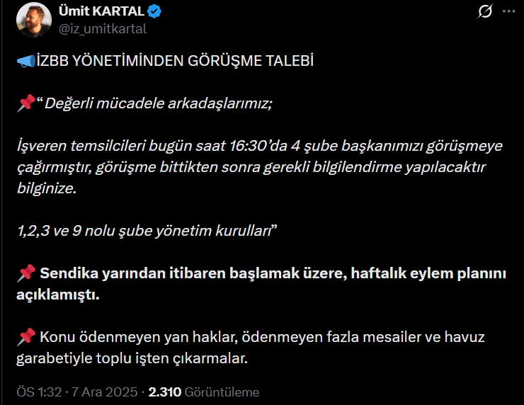 Bu gelişmeler ışığında, yarından itibaren başlayacağımız eylem kararlarımızı ertelememizi ve görüşmelere devam etmemizi talep ettiler. Ancak bu talepleri kabul etmenin mümkün olmadığına dair açık bir şekilde yanıt verdik.