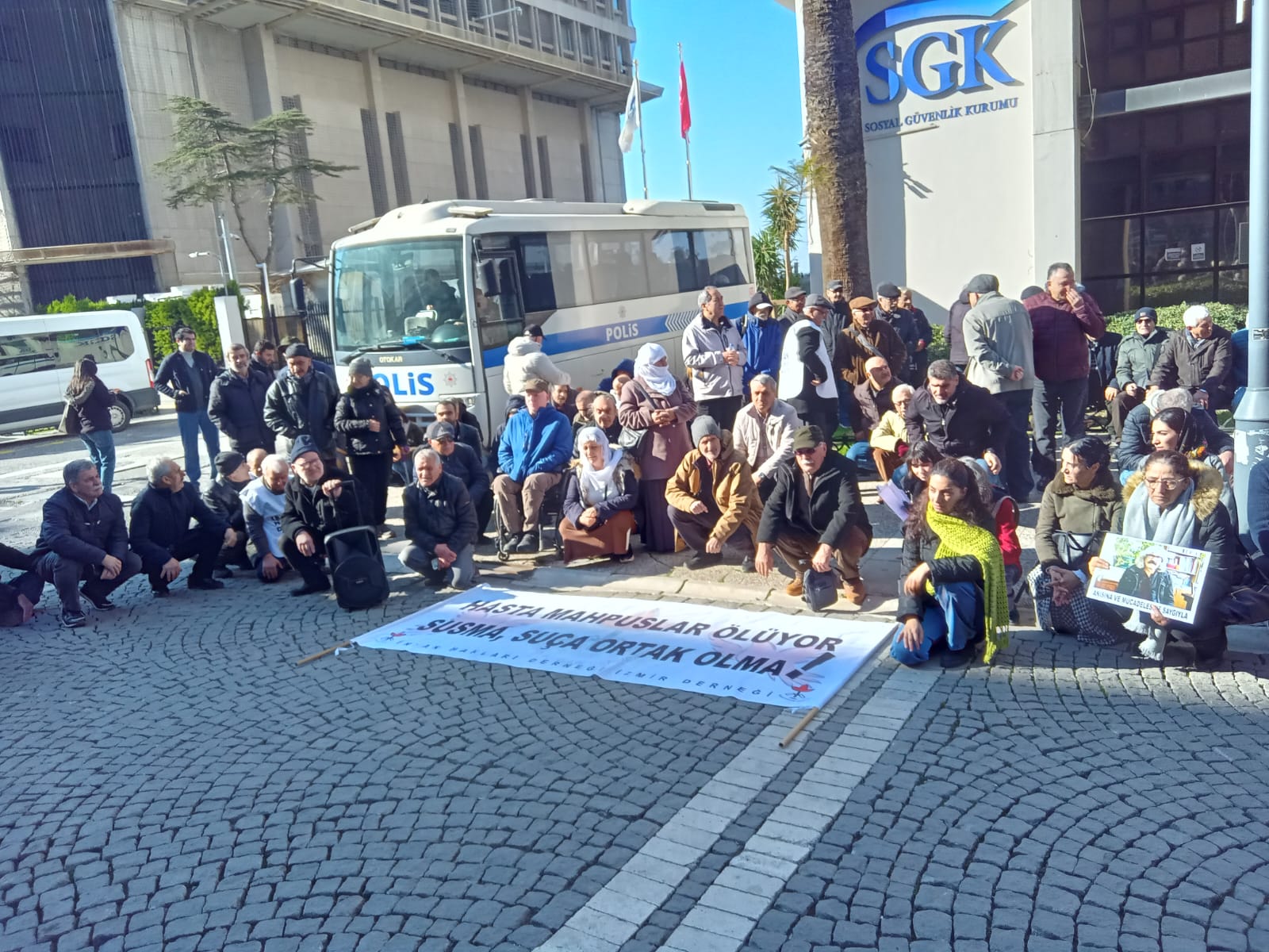 İnsan Hakları Derneği (İHD) İzmir Şubesi, hasta mahpusların yaşam koşullarına dikkat çekmek amacıyla Konak Eski Sümerbank binası önünde bir basın toplantısı düzenledi. 370. hafta kapsamında gerçekleştirilen açıklamayı, İHD İzmir Şubesi Yönetim Kurulu Üyesi Av. Nazlı Turan okudu.