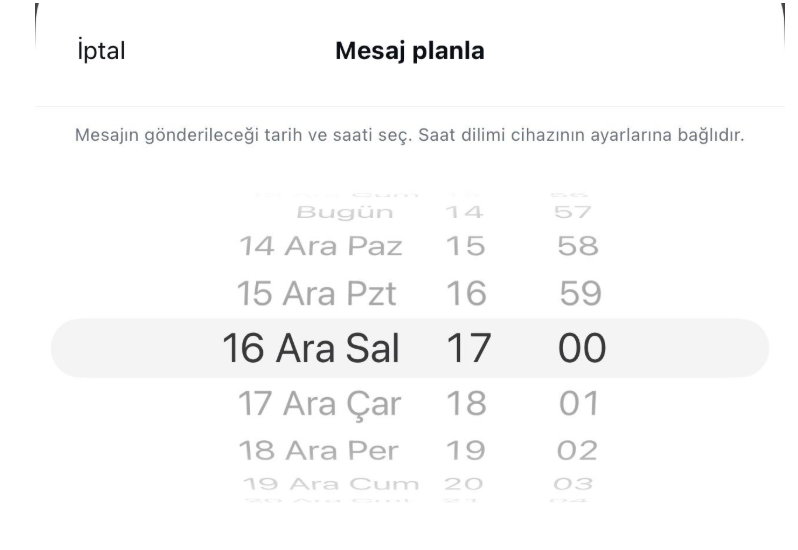 • Karşınıza çıkan menüden mesajın gitmesini istediğiniz tarih ve saati ayarlayın.