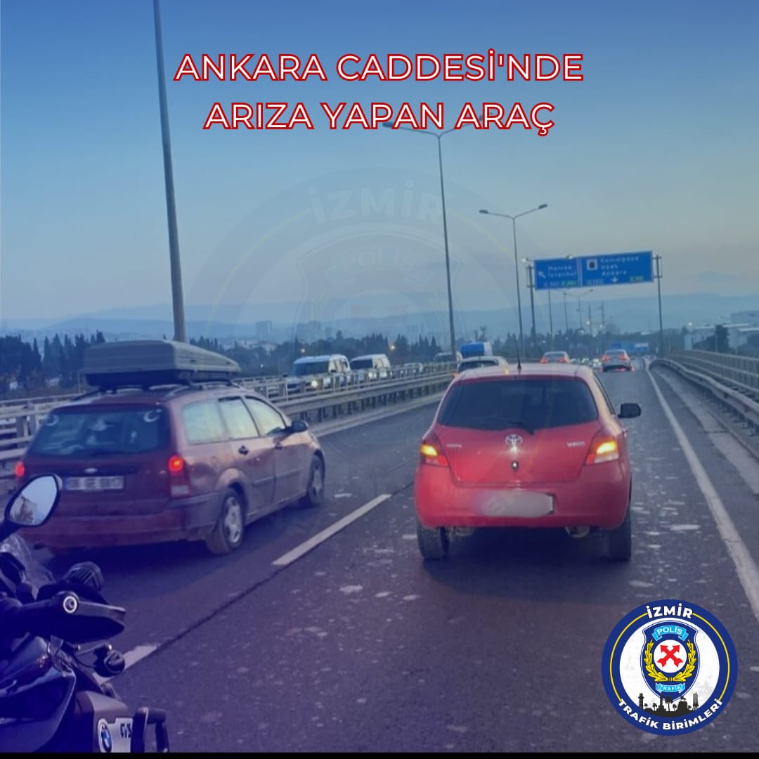 İzmir Emniyet Müdürlüğü, yaptığı açıklamada bölgedeki bir arızalı araç nedeniyle trafik yoğunluğunun artığını duyurdu.