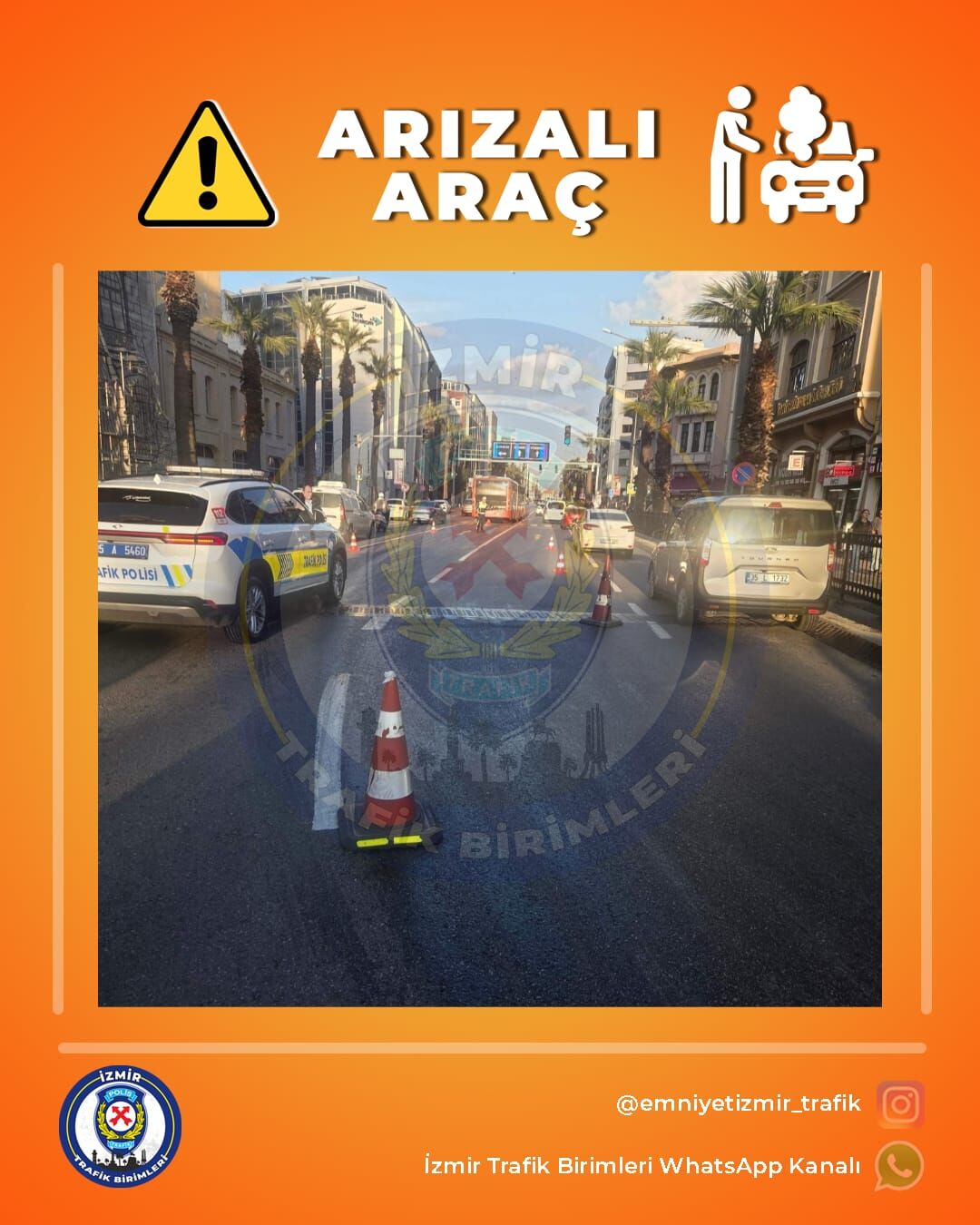 Emniyet, Fevzipaşa Bulvarı Şehit Fethi Bey Kavşağı'nda arızalı bir ESHOT aracı bulunduğunu belirtti.