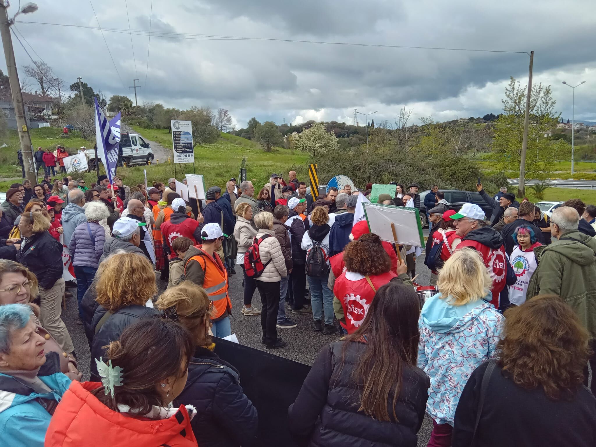 DOĞUKAN FİKRİ FİDAN- İZ GAZETE/ İzmir’de İzmir–Çeşme Otoyolu’nun işletme hakkının devredilmesine karşı düzenlenen eylemde yürüyüşe izin verilmedi. Yarımada genelinden gelen yurttaşlar ve kent konseyleri, otoyol çıkışına yürümek istedi ancak emniyet güçleri buna izin vermedi. Taraflar arasında yapılan görüşmenin ardından eylem, belirlenen alanda gerçekleştirildi. Eylem boyunca “Otoyollar halkındır, satılamaz” sloganları atıldı.