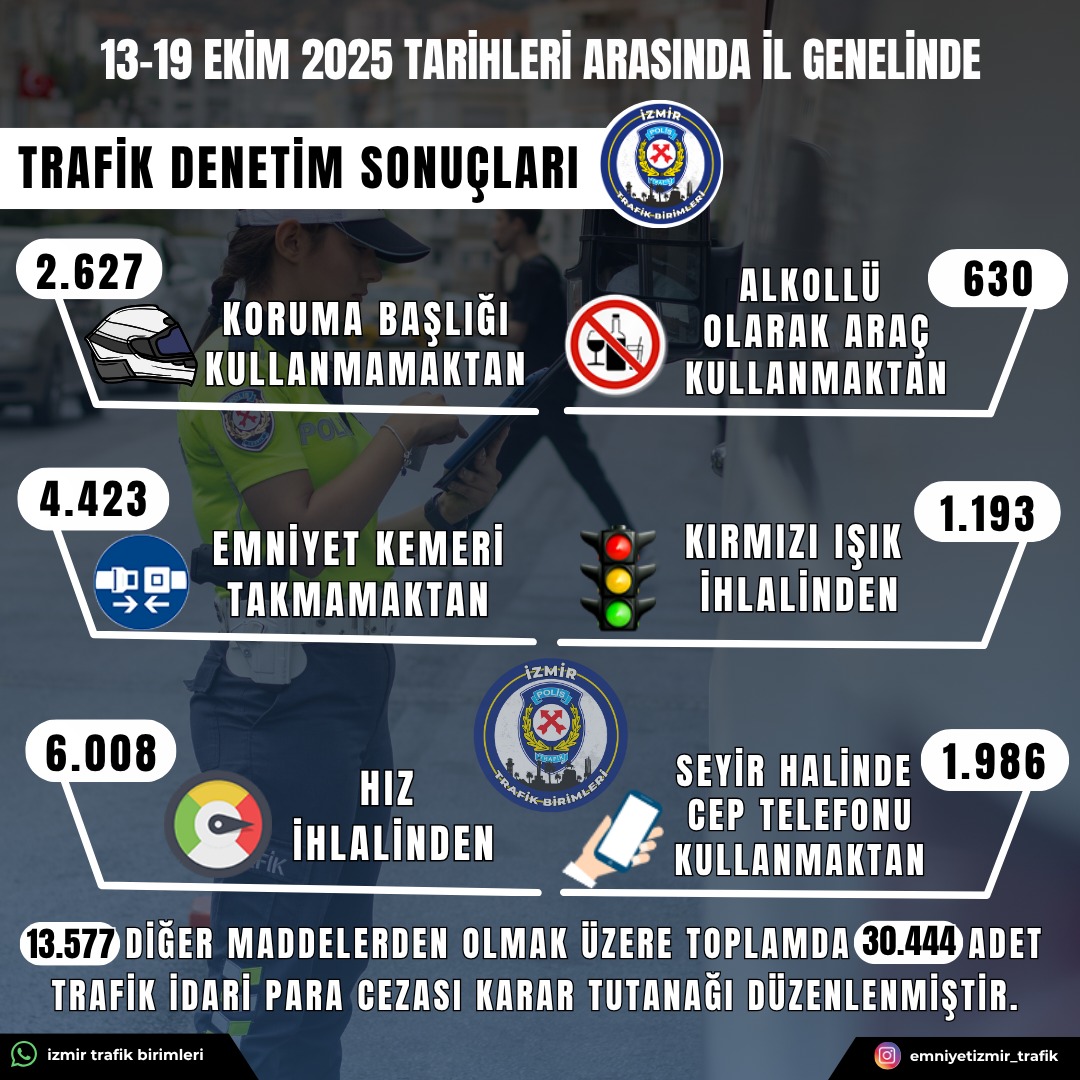 İzmir'de 13-19 Ekim 2025 tarihleri arasında gerçekleştirilen trafik denetimleri, sürücüler için önemli veriler sunuyor. Yapılan denetimlerde hız ihlalleri, motosiklet kazaları ve emniyet tedbirlerine uyulmaması en sık rastlanan ihlaller arasında yer aldı.