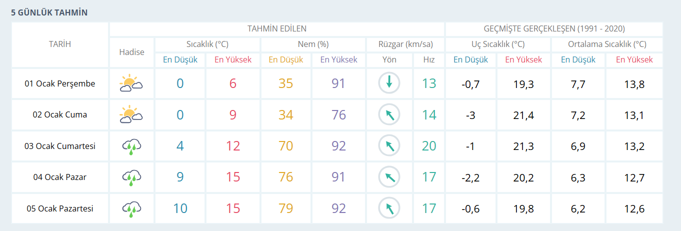 Meteoroloji Genel Müdürlüğü'nün yaptığı değerlendirmelere göre, 1 Ocak 2026 Perşembe günü İzmir genelinde parçalı ve çok bulutlu bir hava hâkim olacak. Gün içerisinde hava sıcaklığının 6 derece civarında kalması beklenirken, gece saatlerinde sıcaklığın 0 dereceye kadar düşmesi tahmin ediliyor.