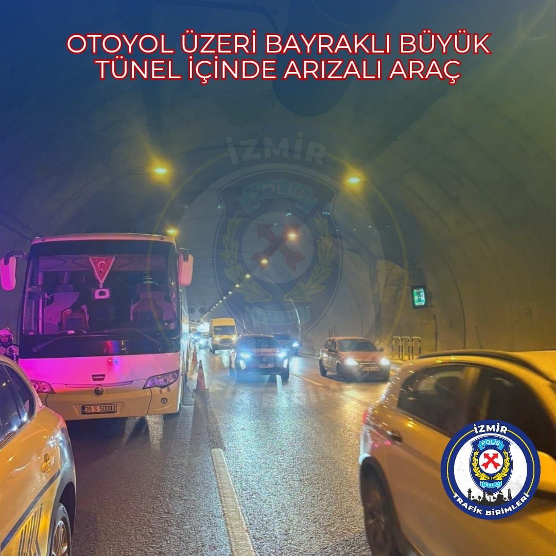 İzmir Emniyet Müdürlüğü yaptığı açıklamada, “Otoyol üzerindeki Bayraklı Büyük Tünel içerisinde Bornova istikametinde sağ şerit üzerinde bir arızalı araç bulunmaktadır. Geriye doğru yaklaşık 500 metre yoğunluk söz konusudur. Bu güzergahı kullanan değerli yol kullanıcılarının bilgisine sunulur.” ifadelerini kullandı.