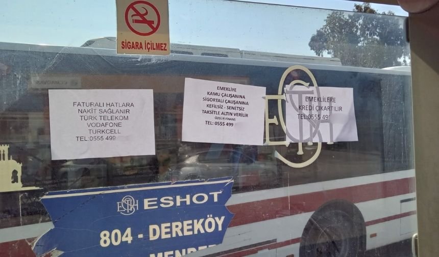 DOĞUKAN FİKRİ FİDAN- İZ GAZETE İzmir’de toplu ulaşım noktalarına bantlanan “kredi” ilanlarının kentin farklı bölgelerine yayıldığı görüldü. Daha önce Cumaovası Aktarma Merkezi’nde tespit edilen ilanların, Bornova, Bayraklı ve Salhane gibi yoğun aktarma noktalarında da yer aldığı belirlendi.