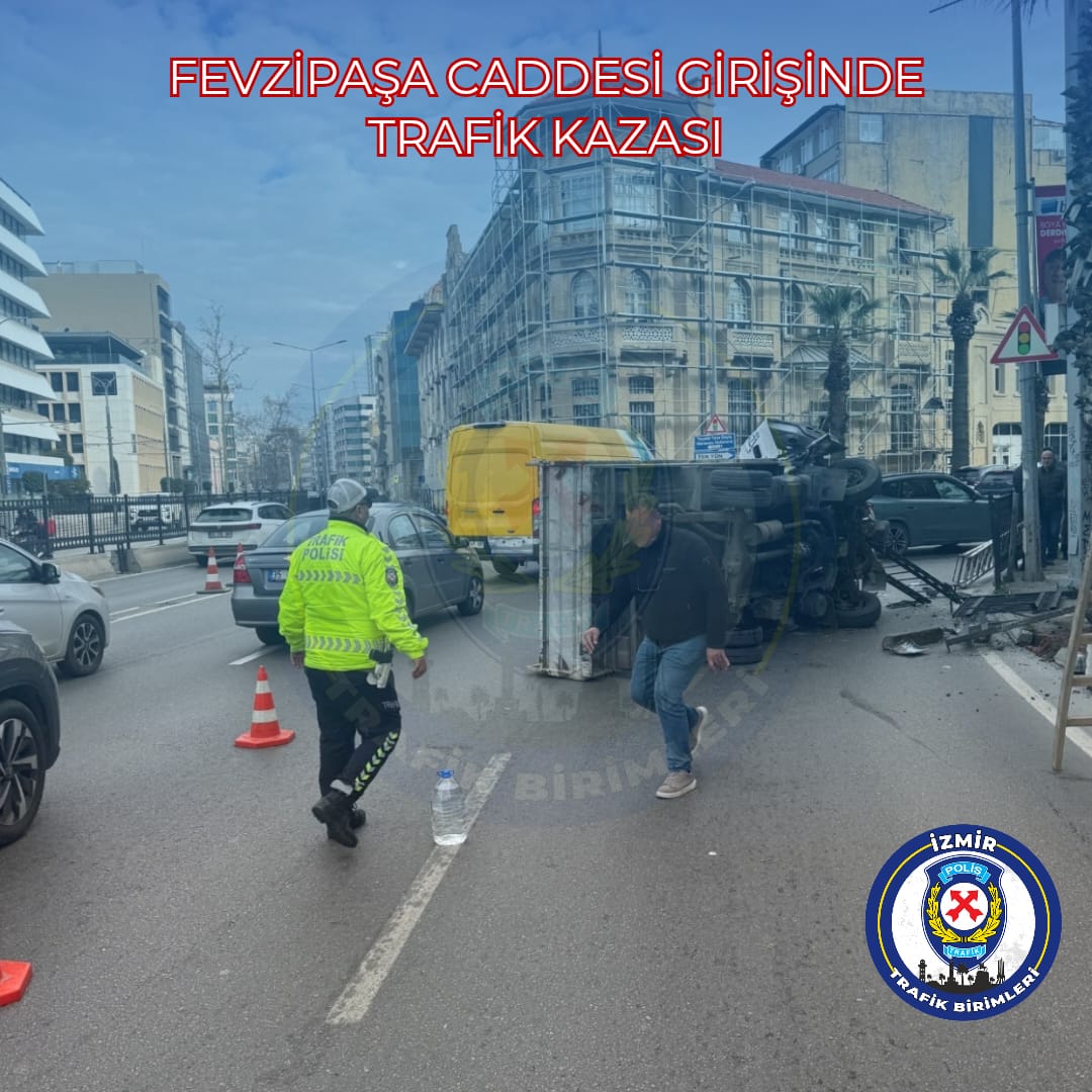 İzmir Emniyet Müdürlüğü, Fevzipaşa Bulvarı girişindeki kaza sonrasında aracın yol dışına alınması için çalışmaların devam ettiğini açıkladı. Sahilden Basmane istikametine doğru ilerleyen trafik akışında yoğunluk yaşanmakta.