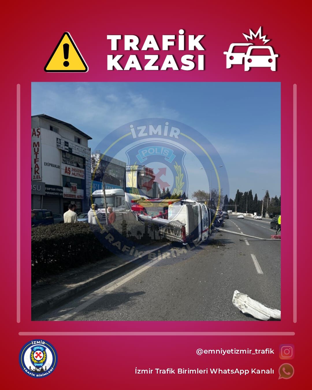 İzmir Emniyet Müdürlüğü’nden yapılan açıklamada kazadan dolayı havalimanı istikametinde sol şeridin, merkez yönünde ise sol şeridin trafiğe kapalı olduğu belirtildi. Trafik yoğunluğunun son noktaları havalimanı istikametinde Paşaköprü Mezarlığı, merkez istikametinde ise Semt Garajı trafik ışıkları olarak duyuruldu.