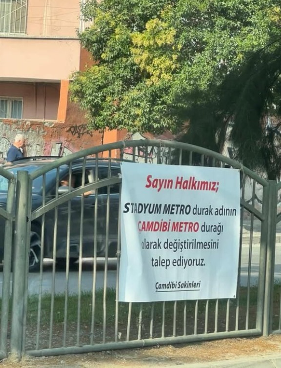 Çamdibi Mahallesi halkı, metro durağı adının değiştirilmesinin yalnızca ulaşım açısından değil, aynı zamanda mahalle kimliğinin daha görünür olması bakımından da önemli olduğunu dile getirerek aşağıdaki afişi astı:
