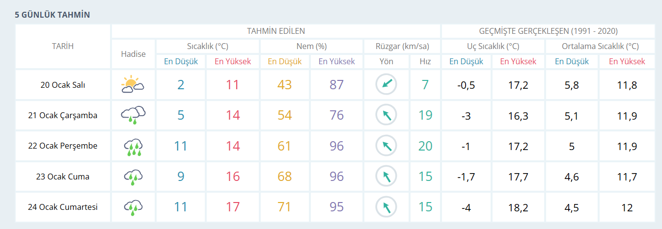 Yapılan tahminlere göre, İzmir'de sıcaklıkların önümüzdeki günlerde artması bekleniyor. 20 Ocak Salı günü hava sıcaklığının 11 derece, 21 Ocak Çarşamba günü ise 14 derece civarında seyretmesi öngörülüyor. Bu iki gün boyunca İzmir genelinde yağış beklenmiyor.