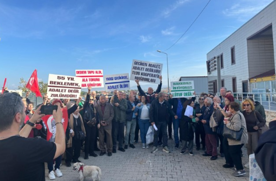 Urla Teos Yapı Kooperatifi’nin 800 hissedarı, devam eden tapu iptalleri nedeniyle yaşadıkları sıkıntıların bir an önce sona ermesini istiyor. 1969 yılında Urla’nın Yağcılar Köyü’nden arsa satın alan vatandaşlar, mülkiyetlerini korumak amacıyla Teos Yapı Kooperatifi’ni kurdular. Ancak geçen yarım asır boyunca kooperatifin tapuları çeşitli idari ve hukuki nedenlerle sık sık iptal edildi. Bu süre zarfında kooperatif üyeleri hak arama mücadelesi vermek için yargıya başvurdu. Günümüzde çoğu 80 yaşın üzerinde olan üyeler, torunlarıyla birlikte Ankara, İstanbul ve İzmir'den otobüsle Urla’ya gelerek duruşmalara katılıyor. Uzun süredir devam eden davalar nedeniyle birçok üye hayatını kaybederken, davalar artık ikinci kuşak üyelerin de müdahil olduğu bir süreçte ilerliyor. Üyeler, davanın üçüncü ve hatta dördüncü kuşaklara kalmasından endişe duyuyor ve yarım asırlık mülkiyet sorununun kalıcı bir şekilde çözülmesini talep ediyorlar.