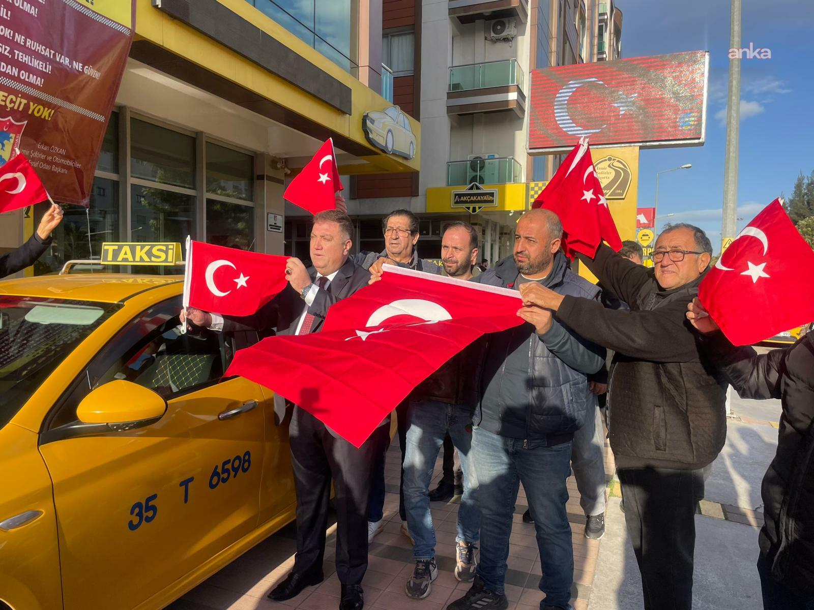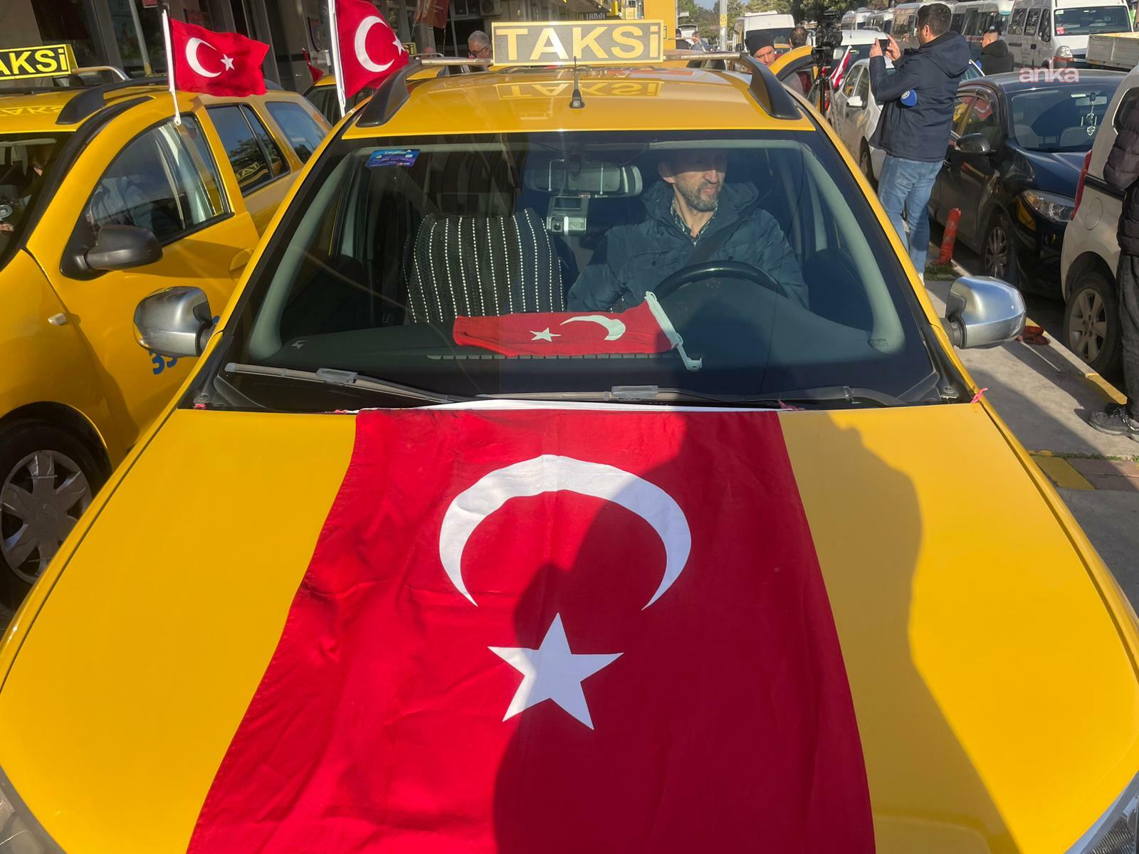 İZMİR’DE TAKSİCİLER TÜRK BAYRAKLARIYLA İŞ BAŞI YAPTI