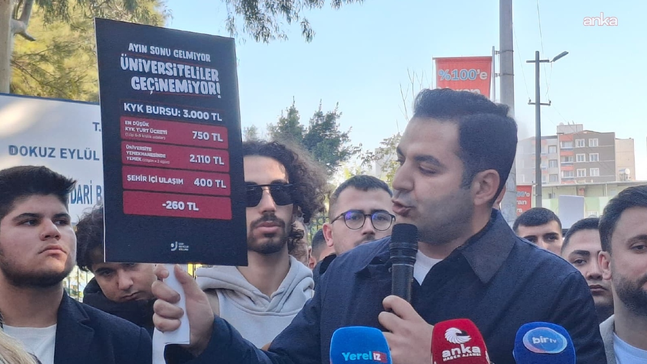 CHP Gençlik Kolları Genel Başkanı Cem Aydın, İzmir’de Dokuz Eylüel Üniversitesi kampüsü önünde gerçekleştirdiği basın toplantısında KYK burslarıyla ilgili önemli değerlendirmelerde bulundu. Aydın, KYK burslarının yıllar içinde eriyen alım gücüne dikkat çekerek, bu durumu “tavuk döner hesabı” üzerinden örneklendirdi.