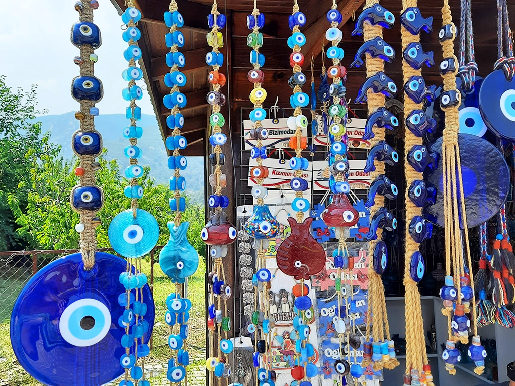 Nazarköy’de yaklaşık 1950 yılından bu yana cam süs eşyaları ve nazar boncuğu üretilmektedir. Eskiden köyde 12’ye yakın boncuk ocağı bulunurken, günümüzde 5 ocak faaliyet göstermektedir. Boncuk Çarşısı’nda 1200 derece ocaklarda erkekler tarafından üretilen boncuklar, kadınlar tarafından tasarlanan takı ve süs eşyalarına dönüştürülerek ziyaretçilerin beğenisine sunulmaktadır.