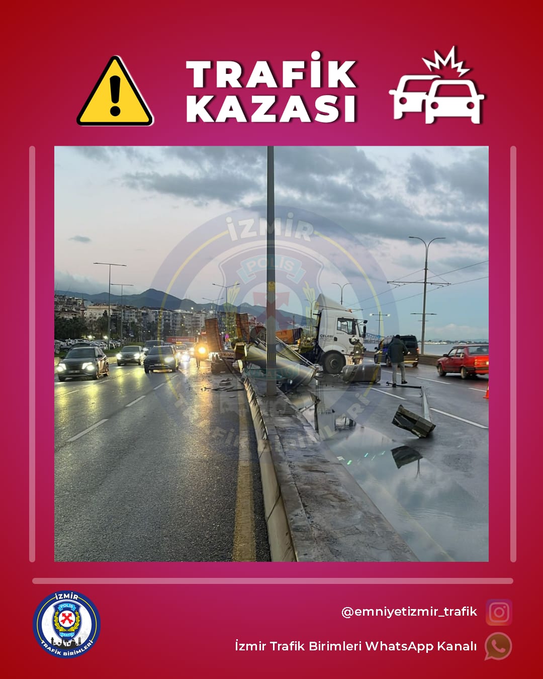 İzmir Emniyet Müdürlüğü tarafından yapılan açıklamada, kazanın Mustafa Kemal Sahil Bulvarı Karantina alt geçit çıkışında meydana geldiği ifade edildi. Konak yönüne giden bir tırın karşı şeride geçmesi sonucu kaza meydana geldiği bildirildi. Ayrıca, İzmir Emniyet Müdürlüğü, kazaya karışan aracın yoldan kaldırma çalışmalarının sürdüğünü ve bu nedenlel her iki yönde de trafik yoğunluğu oluştuğunu aktardı.