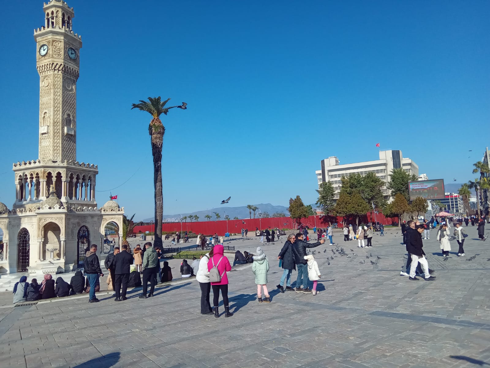 1901 yılında inşa edilen Saat Kulesi, İzmir’in simgesi olarak biliniyor. Onu yaşayan bir mekâna dönüştüren, etrafındaki sosyal yaşam. Güvercinler, fotoğraf çeken insanlar, çocuklar ve kuş yemi satıcıları bu yaşamın vazgeçilmez parçaları. Bir satıcı, kuşlarla olan ilişkisini şöyle ifade ediyor: “Bunlar bizim kuşlarımız gibi oldu. Sabah gelmezsek bizi arar gibiler. Onların aç kalmaması için sabah erken geliyoruz. İnsanları ve kuşları birbirine alıştırıyoruz.”