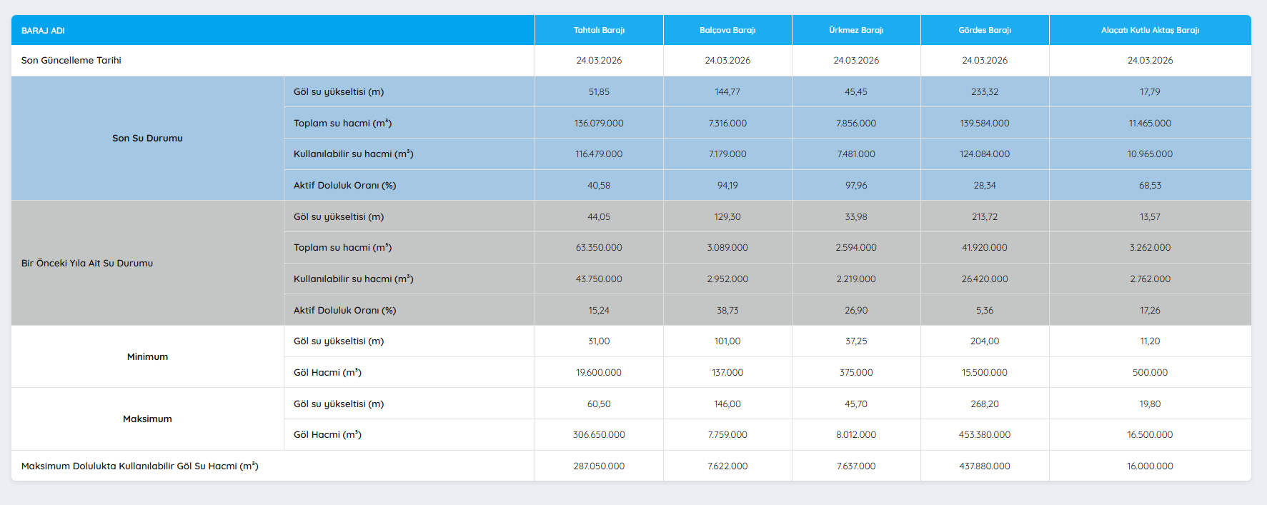 İZSU açıkladı: 24 Mart 2026 İzmir barajlarında son durum