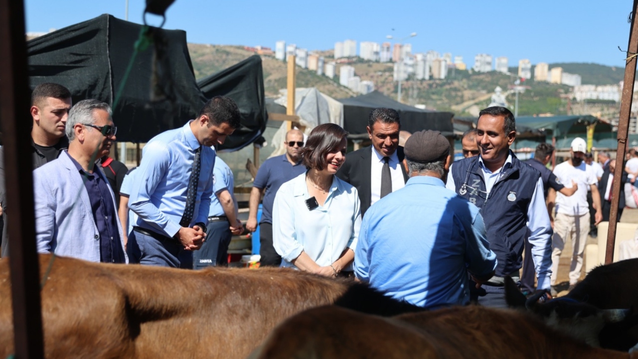Karabağlar Belediye Başkanı Helil Kınay, kurban satış alanını ziyaret ederek satıcılarla bir araya geldi. Kınay, bu yıl geçmişte yaşanan çevre ve hijyen sorunlarının önüne geçmek amacıyla önemli adımlar attıklarını belirtti. “Vatandaşlarımızın güvenle alışveriş yapabileceği, satıcılarımızın da uygun koşullarda hizmet verebileceği bir düzen hazırladık” ifadelerini kullandı. Başkan Kınay, “Kurban Bayramı’nın ruhuna yakışır şekilde, huzur ve dayanışma içinde bir bayram geçirebilmek için tüm ekiplerimizle sahadayız. Bu sürecin gönül rahatlığıyla yaşanması bizim için çok önemli” dedi.