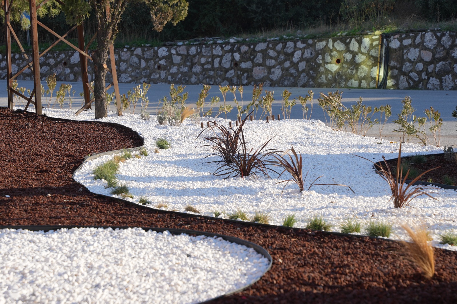 Yüksek su ihtiyacı olan çim alanları yerine kuraklığa dayanıklı bitki türlerinin tercih edildiği bu projede, doğal taşlar, dekoratif çakıl ve az bakım gerektiren unsurlar kullanılmakta; bu sayede hem çevre dostu hem de estetik bir görünüm elde edilmektedir. Böylelikle su tüketimi ve bakım maliyetlerinde de bir azalma sağlanmıştır.
