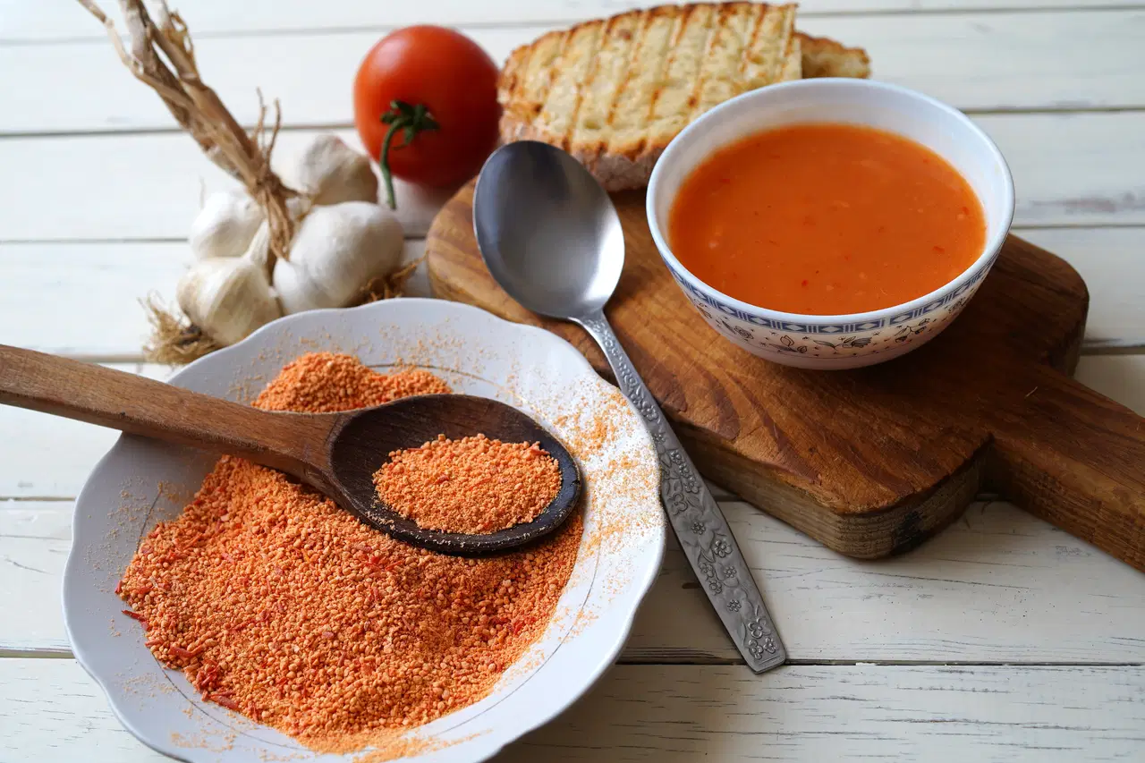 • Tarhana için bir miktar sıcak su ekleyip karıştırarak açın.