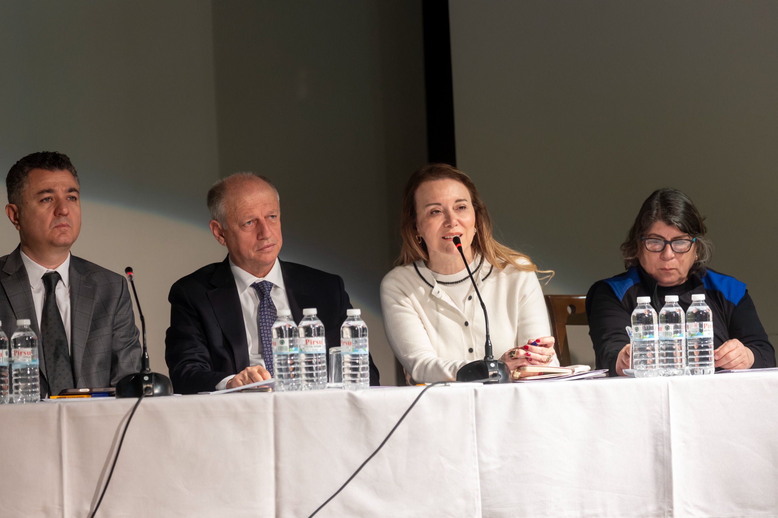Konak Belediye Başkanı Nilüfer Çınarlı Mutlu, Konak’ta tüm kurumların işbirliği yapmasının ve sürekli iletişim halinde olmasının ilçeyi başarıya taşıyacağını dile getirdi. Başkan Mutlu, afetlere hazırlıklı olmak için 7/24 etkin rol alacaklarını vurgulayarak dirençli kent konusunu gündeme getirdi. “Dirençli bir Konak nasıl yaratılır, bunu tartışmak üzere buradayız. Afet sonrası yapılacaklar önemli, ancak yerel yönetimlerin en büyük sorumluluğu, afet öncesinde kenti dirençli hale getirmektir. Biz de çalışmalarımızı bu alanda yoğunlaştırıyoruz. Mimar olarak deprem üzerine yoğunlaştım. Bizim için önemli olan, afette bir kişinin bile burnunun kanamadan o binadan çıkması. Binalar hasar alabilir ama önemli olan hayat kurtarmaktır. Tüm afetlerde amacımız, can kaybı olmadan hazırlığımızı yapmak ve kentleri dirençli hale getirmektir.”