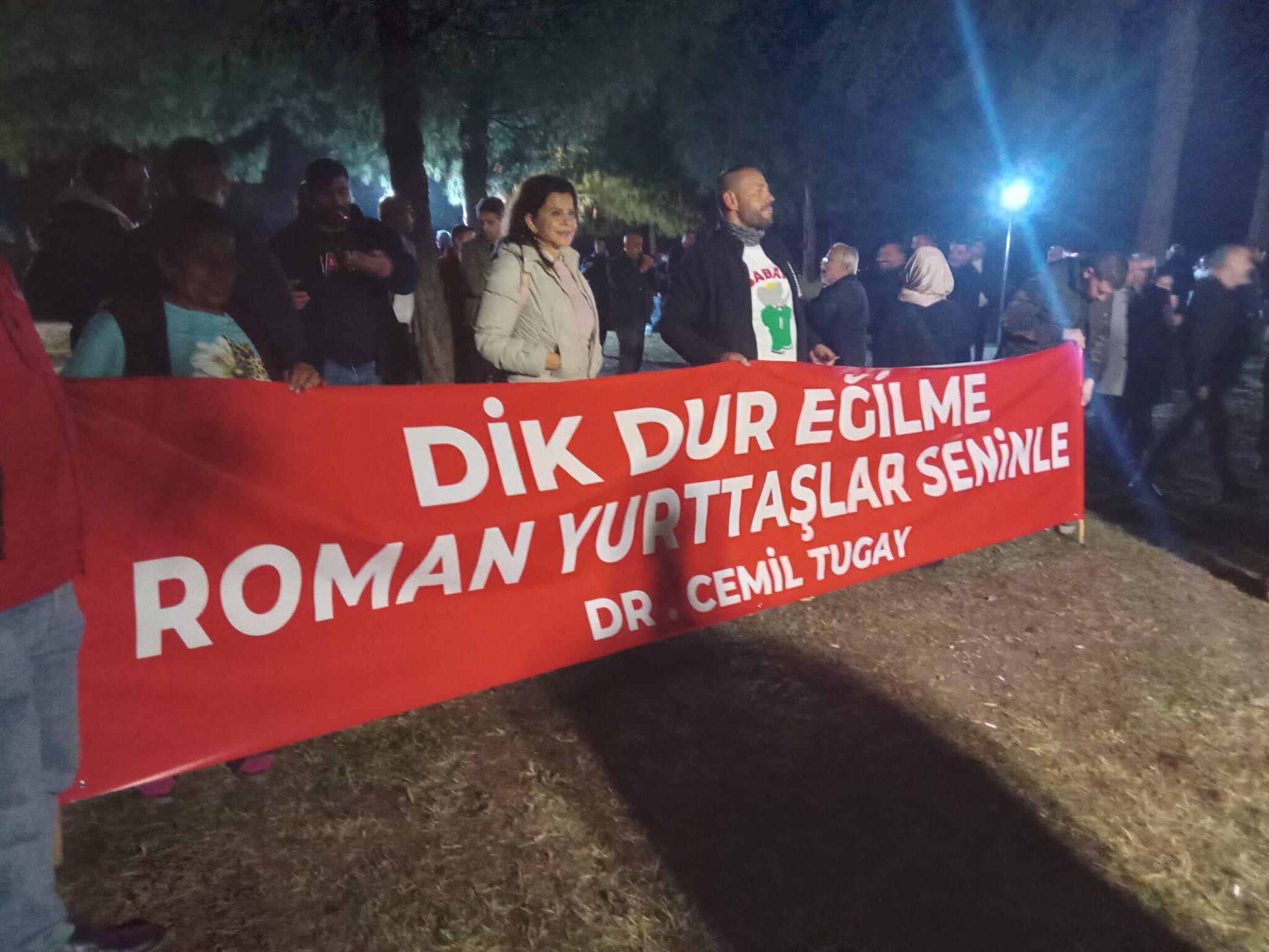 “Dik dur eğilme”, “Roman yurttaşlar seninle” sloganları atan grup, Meslek Fabrikası önünde toplanan kalabalığa moral verdi. Alanda kısa sürede hareketlilik artarken, Roman yurttaşların katılımı direnişe güçlü bir destek olarak yansıdı.