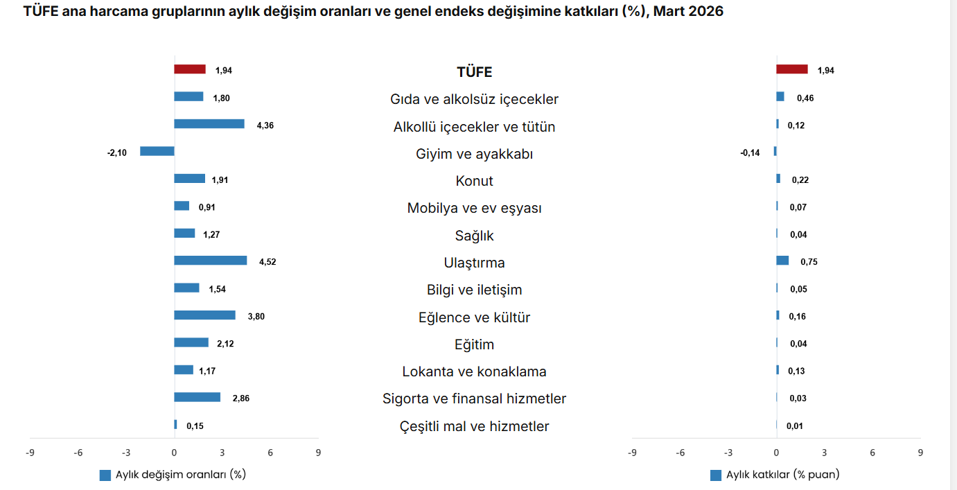 Türkiye İstatistik Kurumu (TÜİK), 'Tüketici Fiyat Endeksi, Şubat 2026 (TÜFE)' bültenini yayımladı.