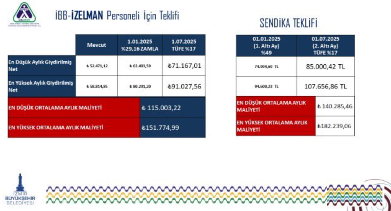Yiğit açıklamasının sonunda, “İzmir Büyükşehir Belediyemiz tarafından tüm koşullar zorlanarak yapılan teklifleri İzmirli hemşehrilerimizin ve tüm kamuoyunun vicdanına sunuyoruz. Ayrıca tüm belediye çalışanı emekçi kardeşlerimizi işlerine ve şehirlerine sahip çıkmaya davet ediyoruz.” ifadelerini kullandı.