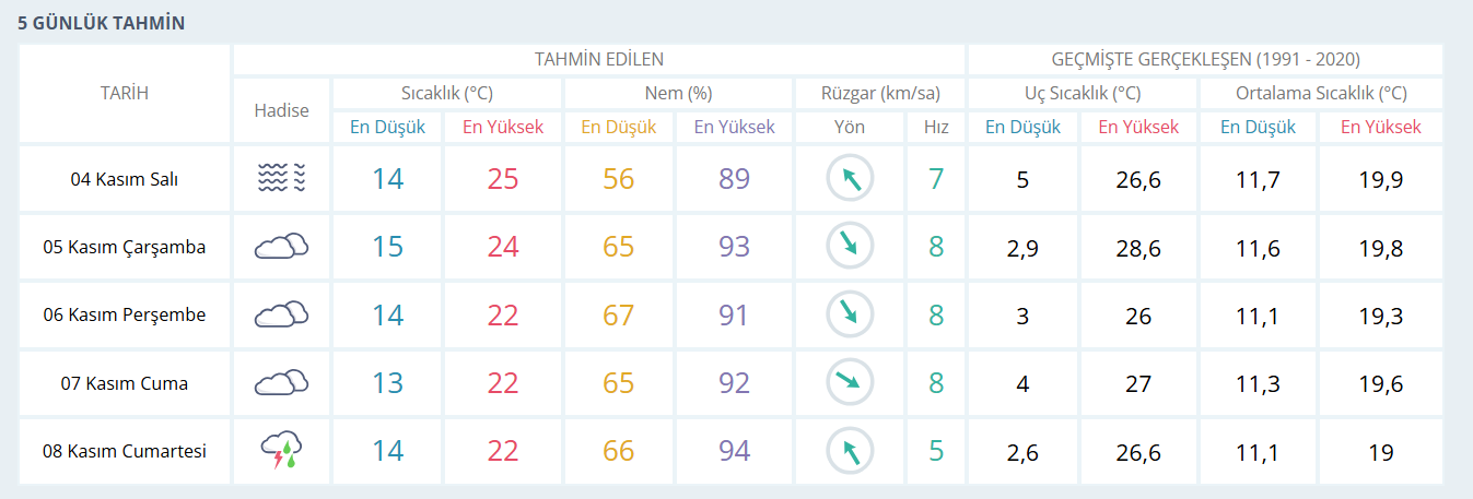Son günlerde İzmir'de etkisini gösteren pastırma sıcaklıkları, yerini puslu ve bulutlu hava koşullarına bırakıyor. Meteoroloji Genel Müdürlüğü verilerine göre, İzmir'de (bugün) 4 Kasım Salı günü hava sıcaklığı 25 derece olarak kaydedilecek. Haftanın ortasından itibaren sıcaklıkların yavaş yavaş düşmesi ve hafta sonunda gök gürültülü sağanak yağışların başlaması öngörülüyor. İşte özellikle İzmirlileri ve bu hafta İzmir'de planları olan vatandaşları yakından ilgilendiren detaylar…