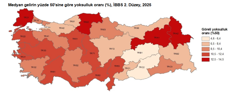 TÜİK verilerine göre, medyan gelirin yüzde 50’si esas alınarak hesaplanan yoksulluk sınırı, İzmir için 139 bin 752 TL olarak belirlendi. Hesaplamalara göre, İzmir'de 471 bin kişi yoksulluk sınırının altında yaşamaktadır. 2024 yılında bu sayı ise 446 bin olarak kaydedilmişti. Nüfusa oranla yoksulluk oranı, 2025 yılında yüzde 10,7 olarak belirlenirken, bu oran 2024’te yüzde 10,1 seviyesindeydi.