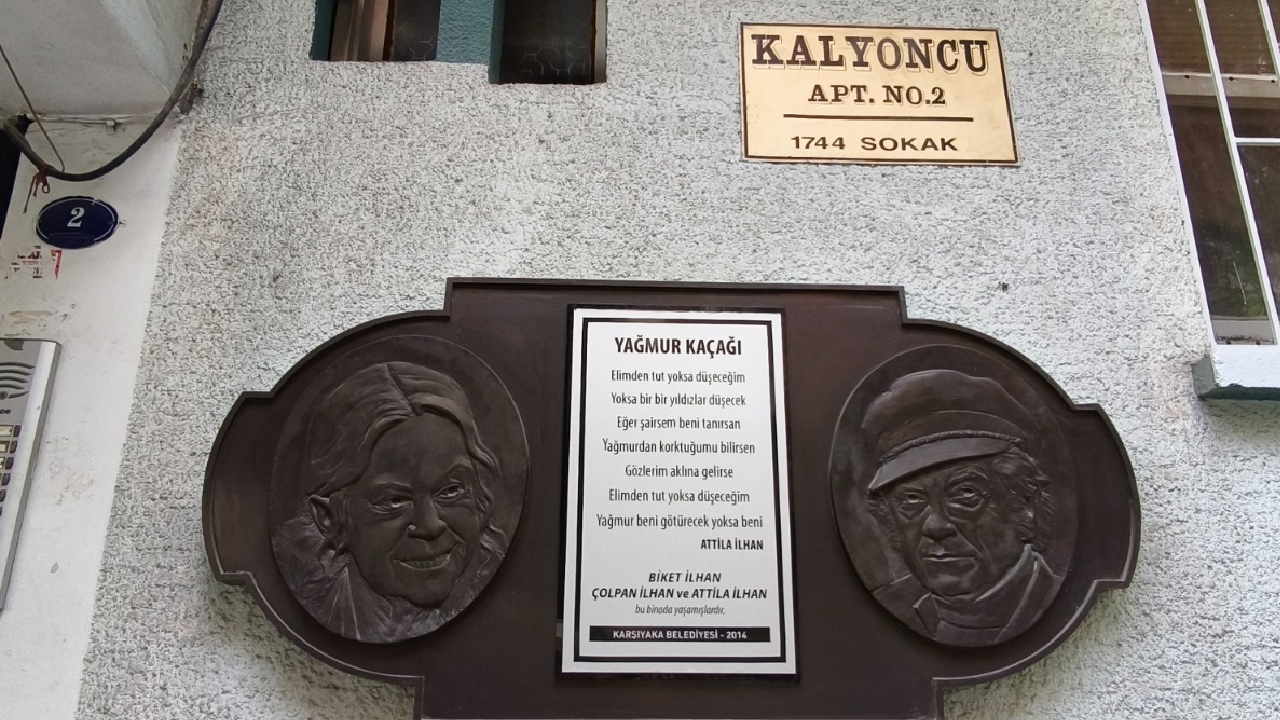 Attila İlhan Sokağı No:2'de yer alan Kalyoncu Apartmanı’nda yaşayan şair için, 2014 yılında Karşıyaka Belediyesi tarafından apartman girişine bir anı plaketi konulmuştur. Plakette, 'Biket İlhan, Çolpan İlhan ve Attila İlhan bu binada yaşamışlardır' ifadeleri yer almaktadır.