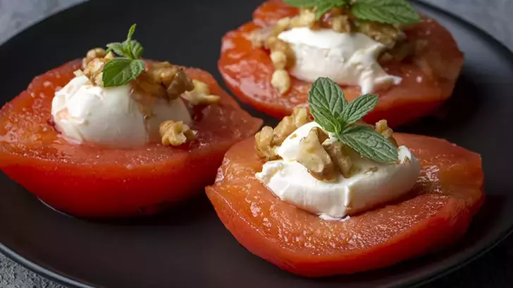 Yılbaşı gecesine özel “Ne tatlı pişirsem” diye düşünenler için önerimiz ayva tatlısı. Tarifi uyguladıktan sonra, nar gibi kızarmış tatlınızın üzerine kaymak ve antep fıstığı eklemeyi ihmal etmeyin. Afiyet olsun!